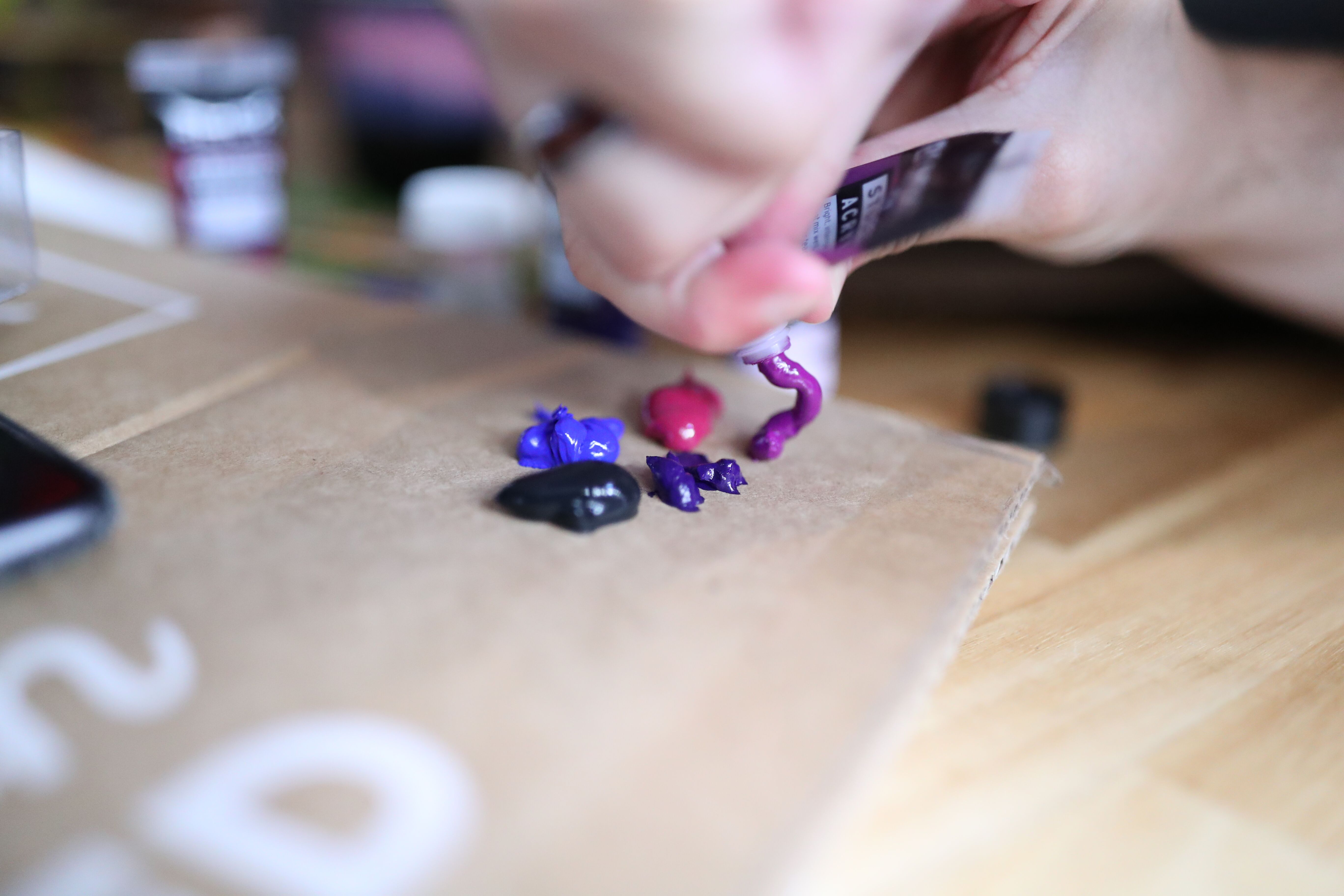 - An assortment of paint (top priorities: black, white, blue and purple)